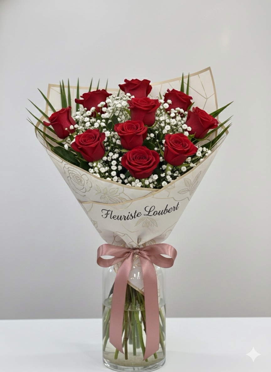 Bouquet de 11 roses rouges avec gypso