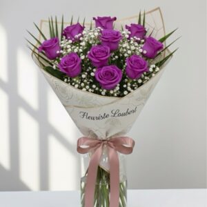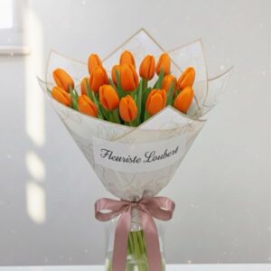 Bouquet de 11 roses orange avec gypso