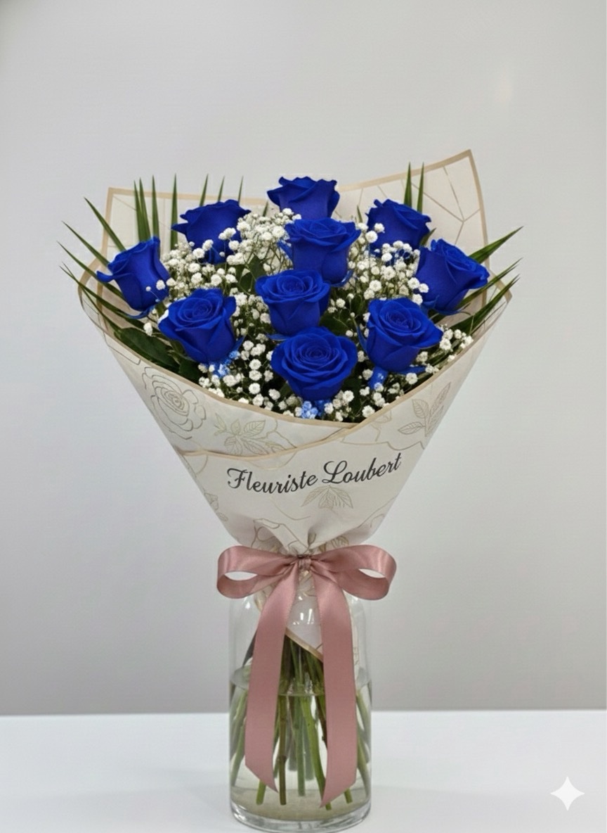 Bouque de 11 roses bleu avec gypso